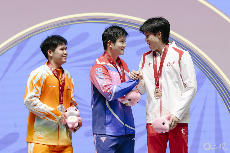 走上领奖台的那一刻,樊振东没有独自享受掌声,而是特意招呼上海队的队友、教练和领导一起上台,手拉手接受这份荣誉。新闻发布会上,他又特意提到了自己的上海保障团队,言语间满是感激:“这个全运周期,自己在伤病、心态上都有很多扛不住的时候,感谢上海在全运会前对我的理解,从各个方面给了我很多支持,让我可以用好状态去备战。”