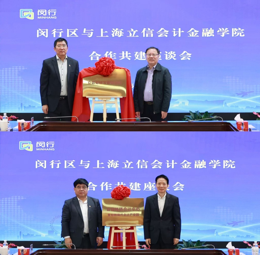 11月4日,上海立信会计金融学院与闵行区举行合作平台揭牌仪式,立信虹桥发展研究院、立信虹桥会计中心(暨虹桥现代会计产业园)在闵行区正式揭牌成立。