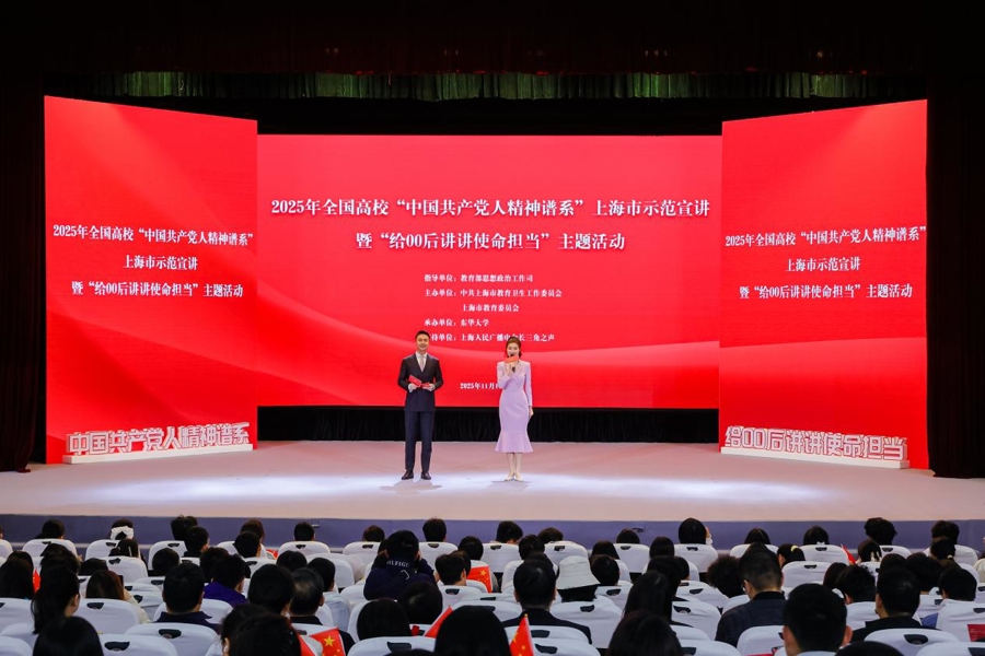 11月11日,2025年全国高校“中国共产党人精神谱系”上海市示范宣讲暨“给00后讲讲使命担当”主题活动在东华大学举行。会上,2025年全国高校“中国共产党人精神谱系”上海市宣讲暨“给00后讲讲使命担当”主题活动正式启动。